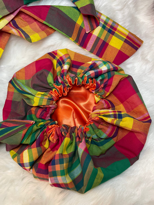 Bonnet Turban ajustable en Madras et satin