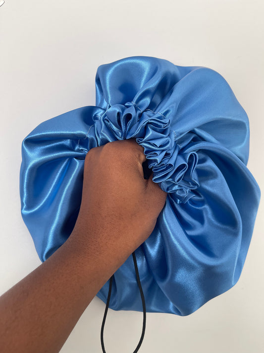 Bonnet en satin ajustable “ BLEU FONCÉ”
