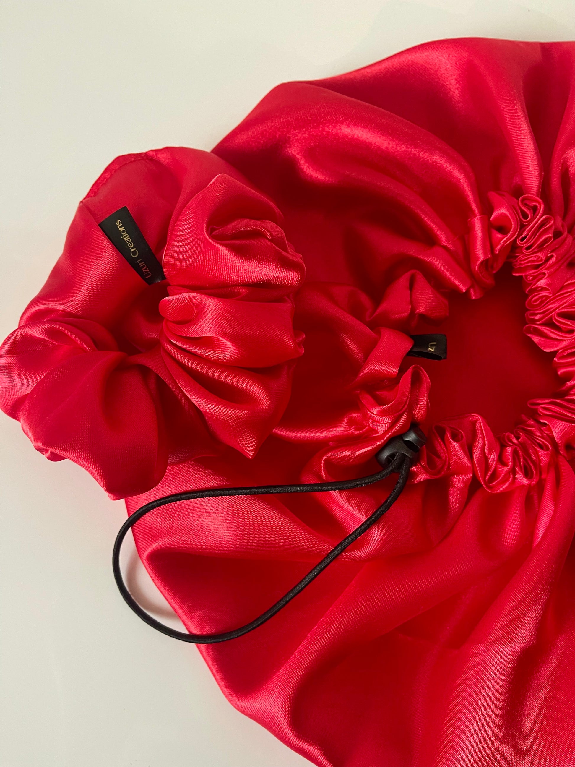 Découvrez le duo indispensable pour des cheveux parfaitement protégés, jour et nuit : le bonnet en satin et son chouchou assorti.