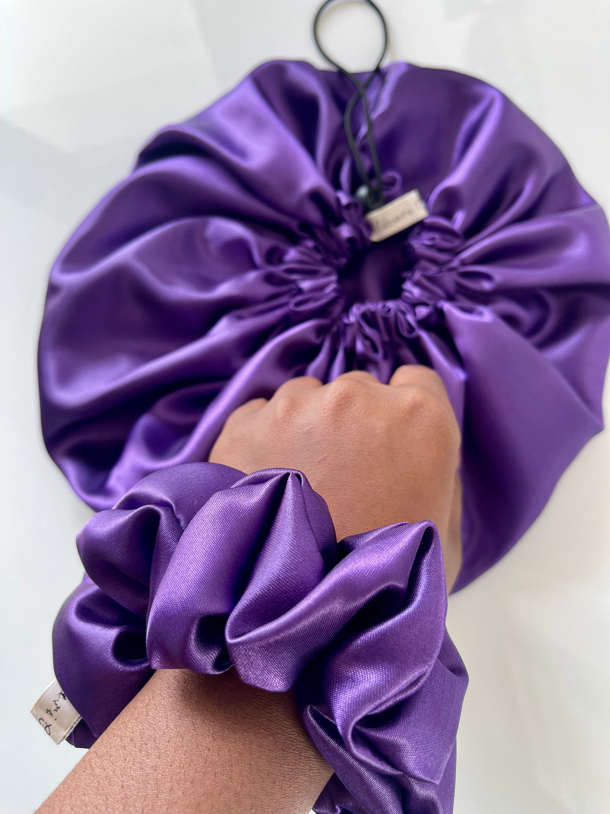 ✨ Offrez à vos cheveux le duo parfait : un bonnet en satin doux pour la nuit et un chouchou assorti pour la journée.